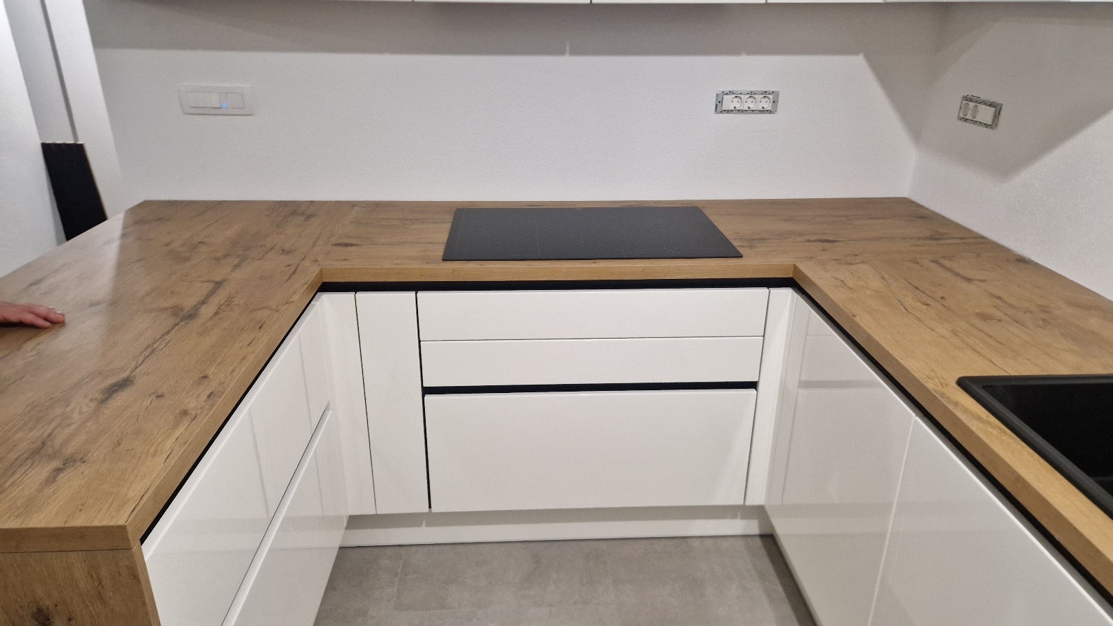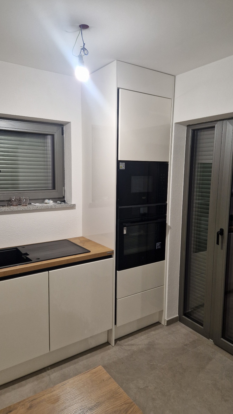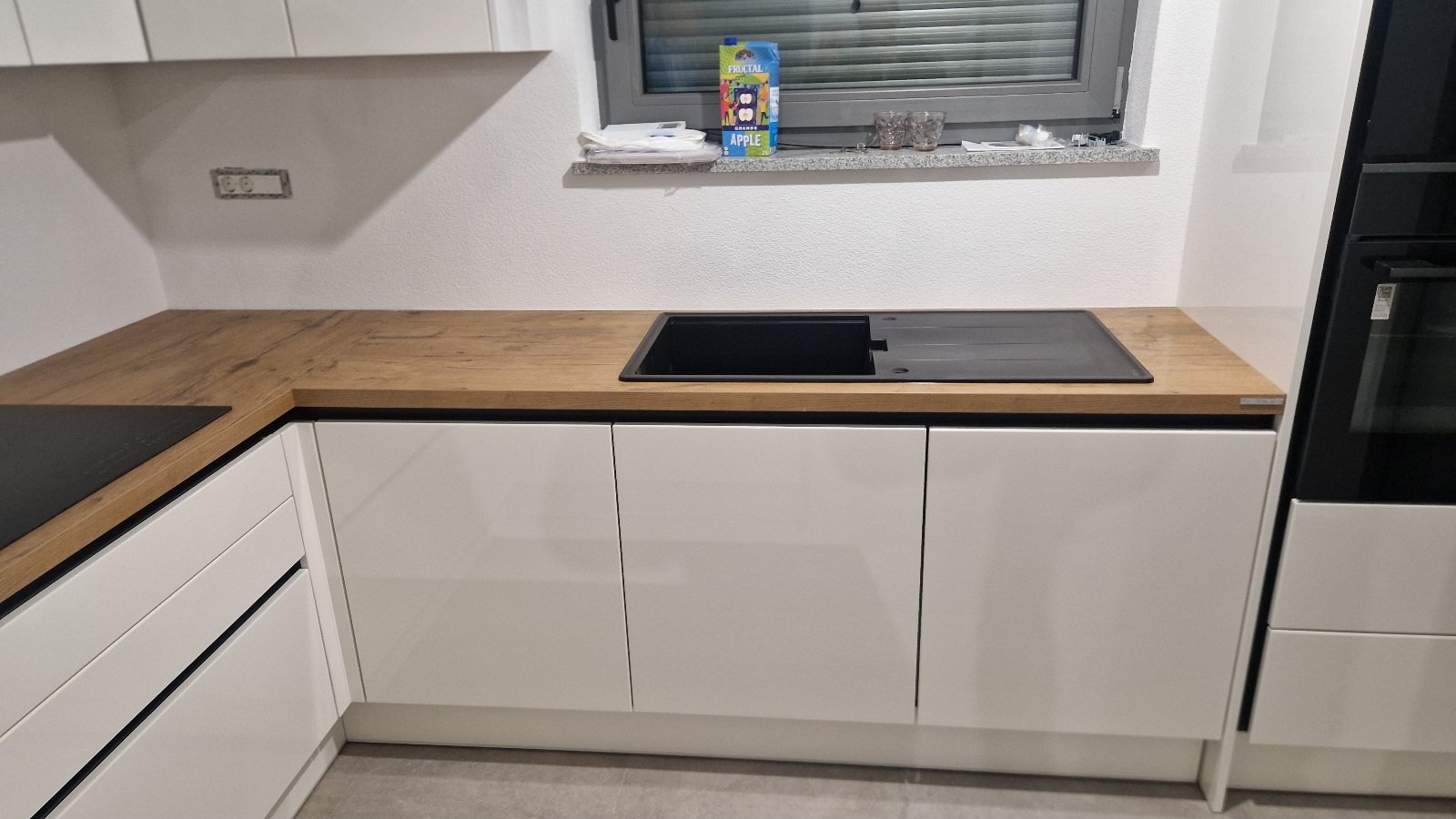 V Kopru smo izvedli montažo kuhinje Silbermond v beli sijaj izvedbi, v kombinaciji z dekorjem hrasta, ter hkrati namestili tudi regal za dnevno sobo. Kuhinja je opremljena s črnimi profilnimi ročaji, celoten videz pa lepo dopolnjuje bela tehnika. Stranka je do nas prišla na podlagi priporočila in bila z izvedbo zelo zadovoljna ter posebej pohvalila tudi našega monterja.